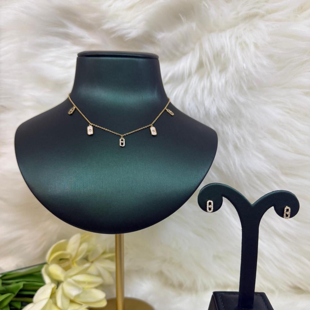 - سلسال تشوكر و حلق أنيق مطلي ذهب عيار 18